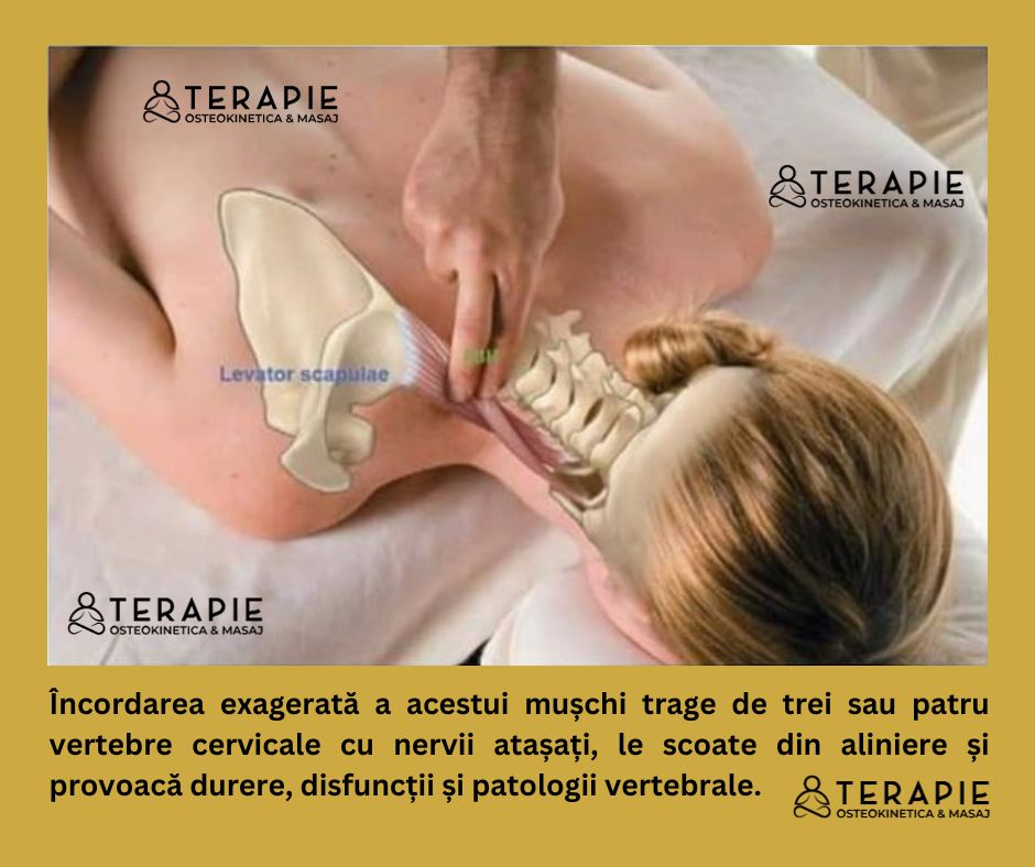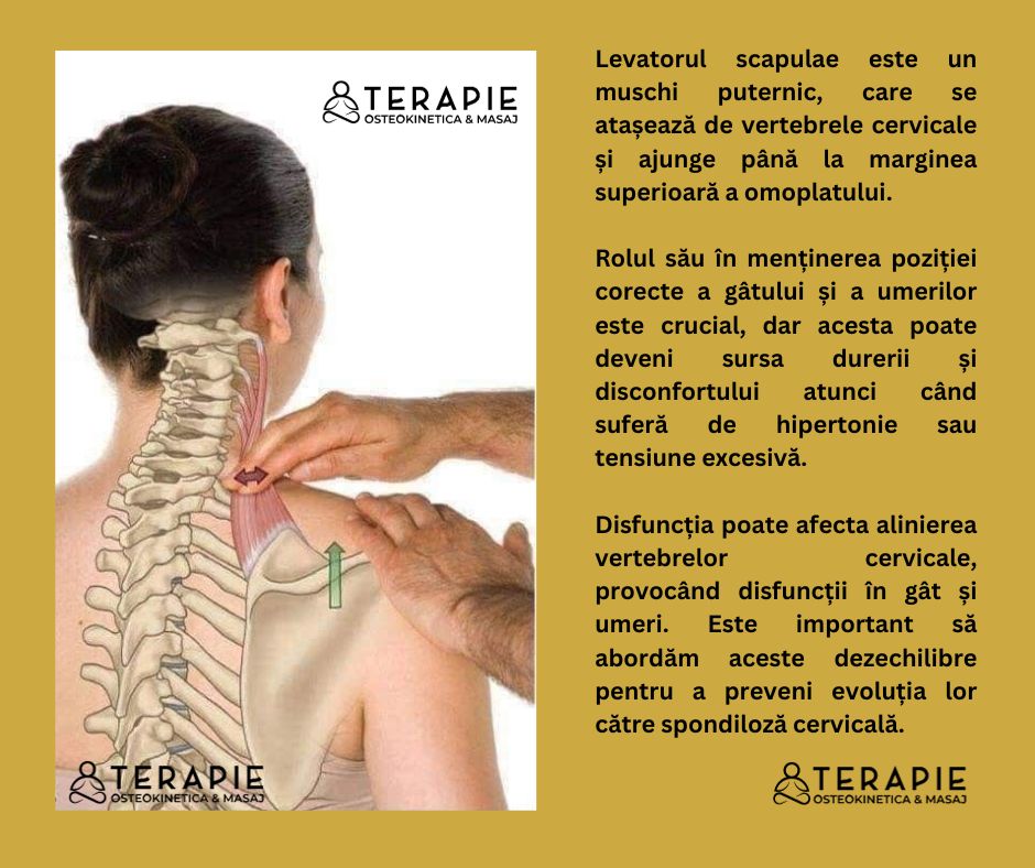 3. Legătura cu Postura Corectă: Levatorul scapulae are un rol semnificativ în menținerea posturii corecte. Orice disfuncție sau hipertonie în acest muschi poate duce la dezechilibre posturale, contribuind la afecțiuni precum spondiloza cervicală și Sindromul Upper Crossed